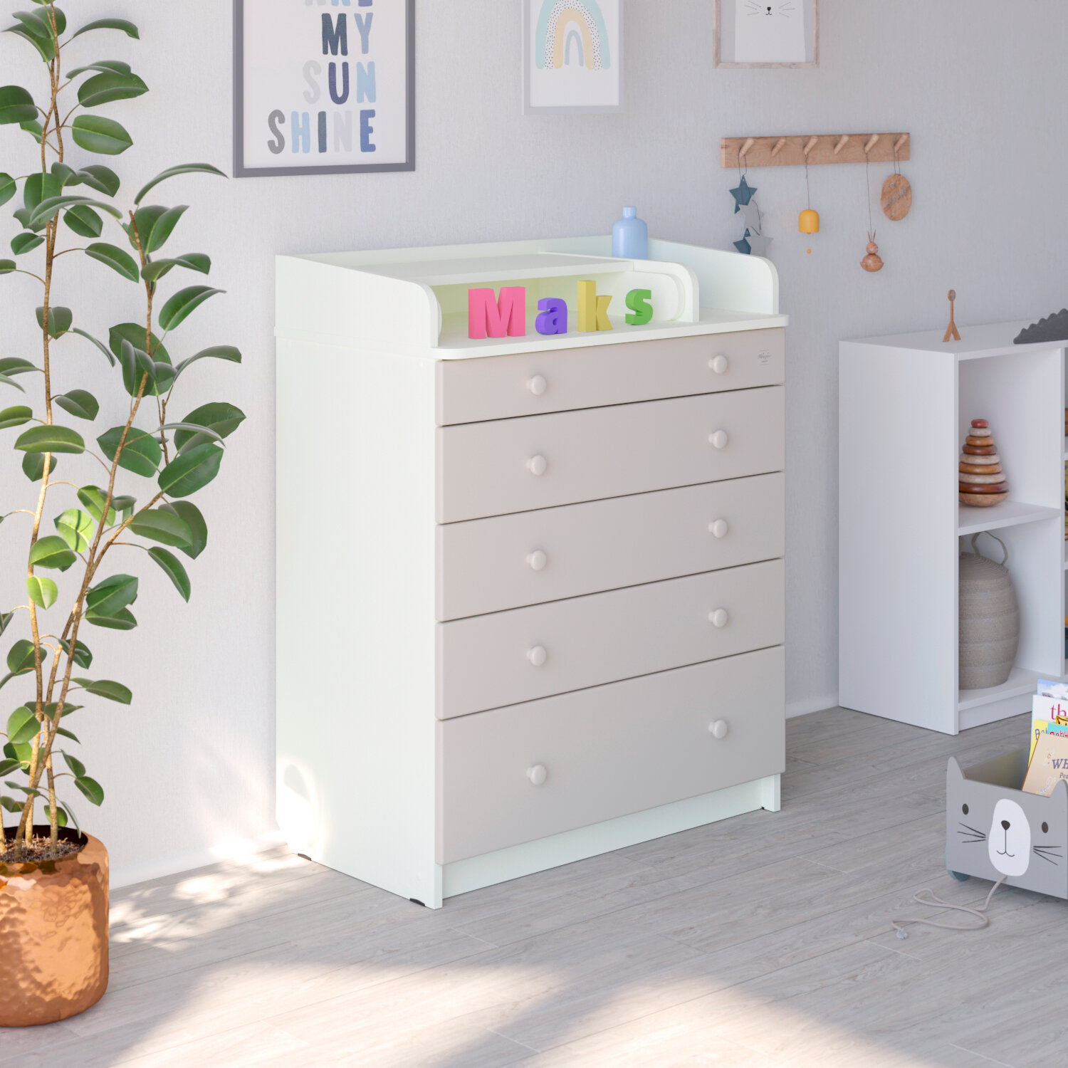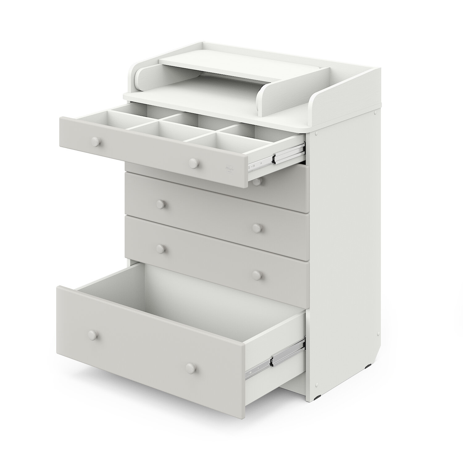 Пеленальный комод Maks, 5 ящиков, Древесина белая/белый софт