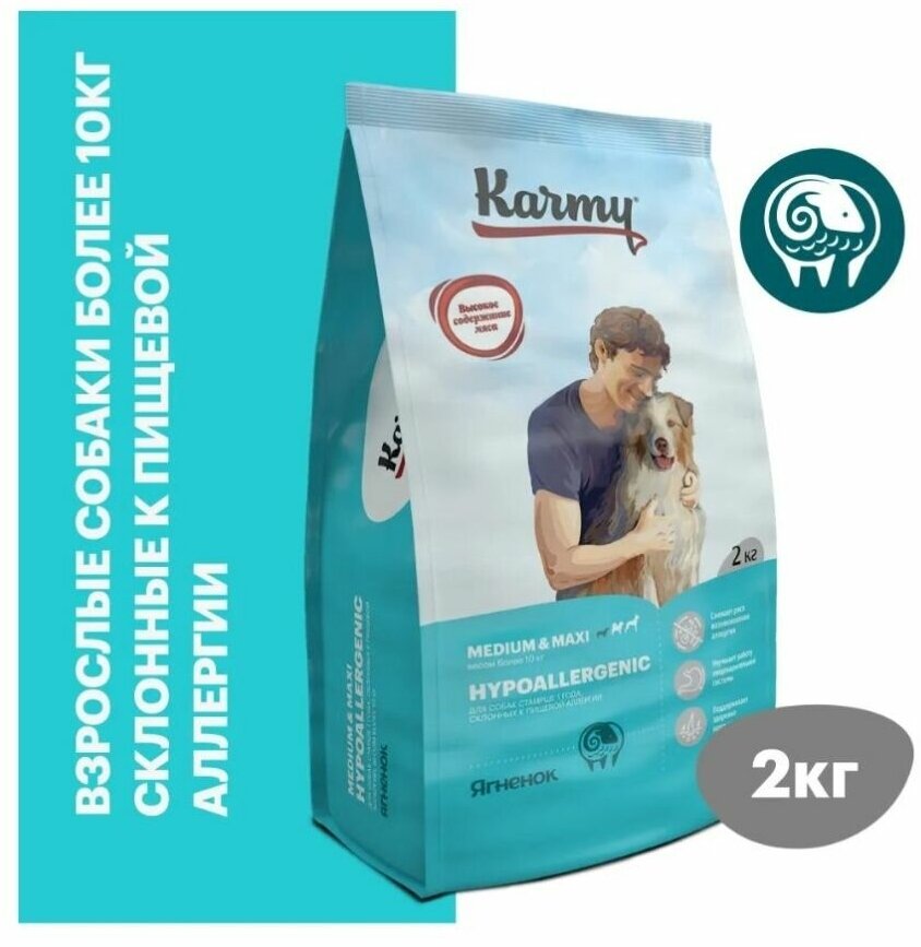 Купить Karmy Hypoallergenic Medium & Maxi сухой корм для взрослых собак средних и крупных пород при аллергии с ягненком - 2 кг