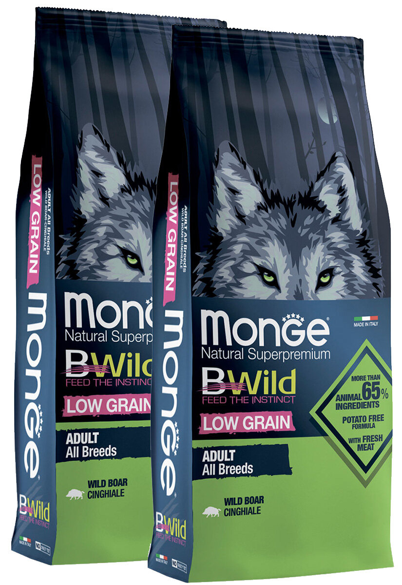 Сухой корм MONGE BWILD LOW GRAIN DOG ADULT ALL BREEDS WILD BOAR низкозерновой для взрослых собак всех пород с мясом дикого кабана (12 + 12 кг) интересное: