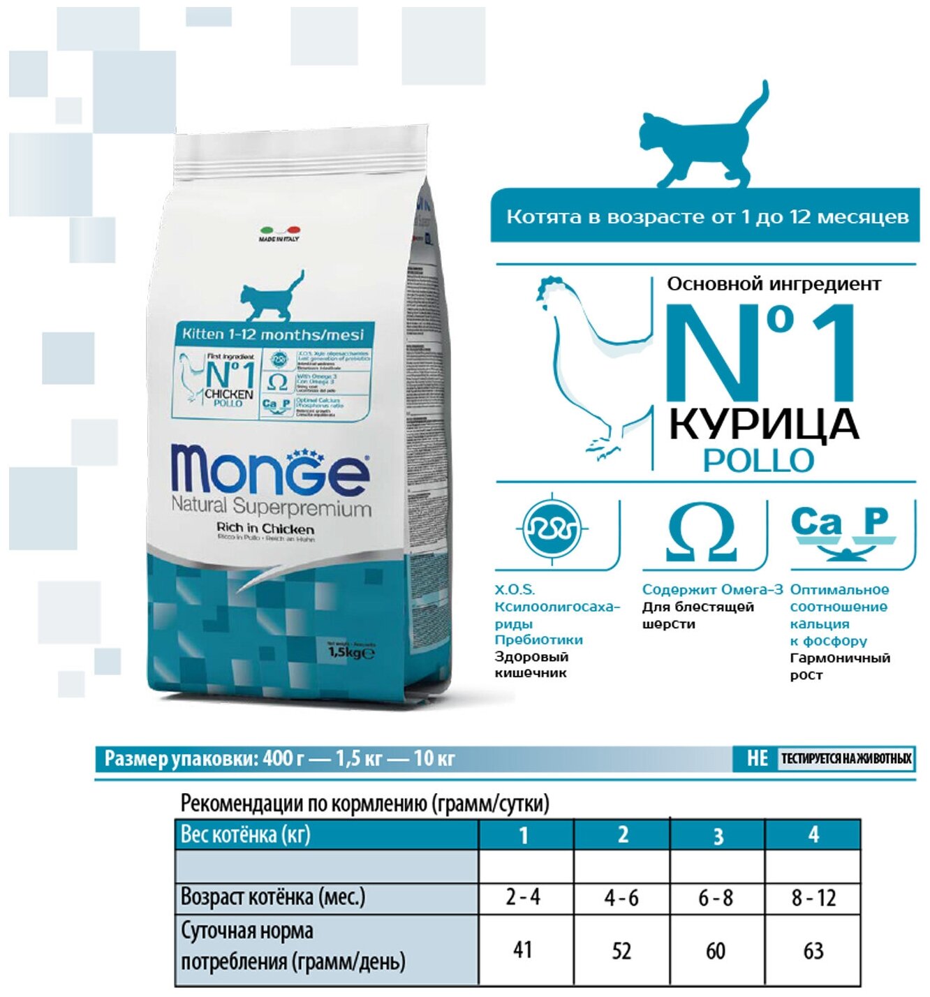 Сухой корм Monge 10кг Kitten для котят, с курицей и рисом интересное: