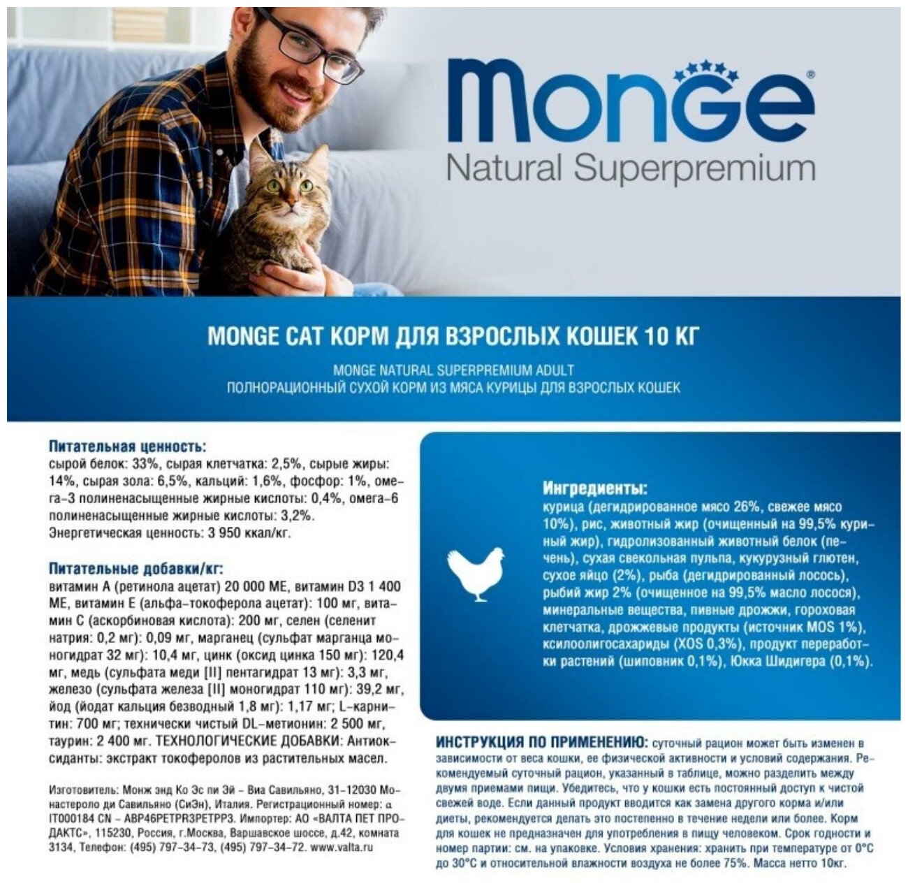 Monge Cat сухой корм для взрослых кошек 1,5 кг. интересное: