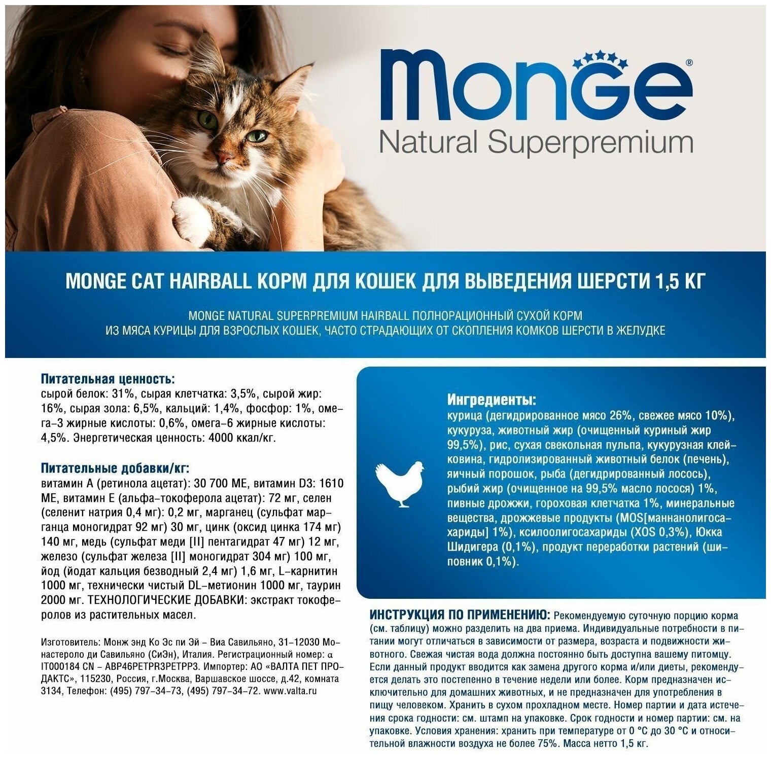 Monge корм для кошек для выведения шерсти (cat hairball) интересное: