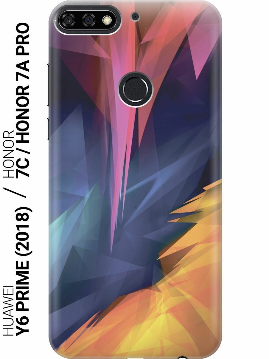 Силиконовый чехол на Honor 7C, 7A Pro, Huawei Y6 Prime (2018), Хуавей У6 Прайм 2018, Хонор 7А Про, 7С с принтом "Розовый, синий, желтый"