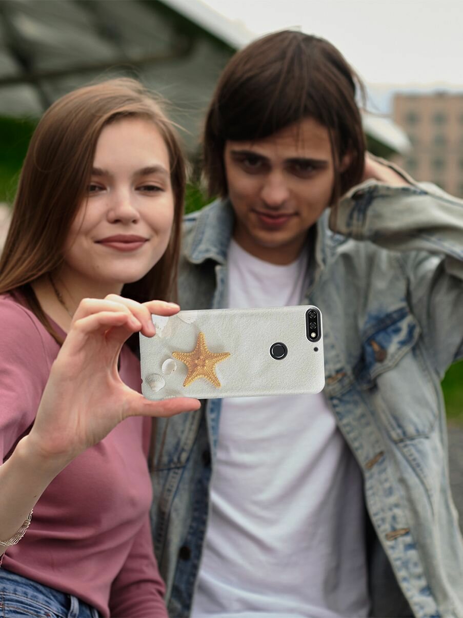 Силиконовый чехол Желтая морская звезда на Honor 7C / 7A Pro / Huawei Y6 Prime (2018) / Хуавей У6 Прайм 2018 / Хонор 7А Про / 7С интересное: