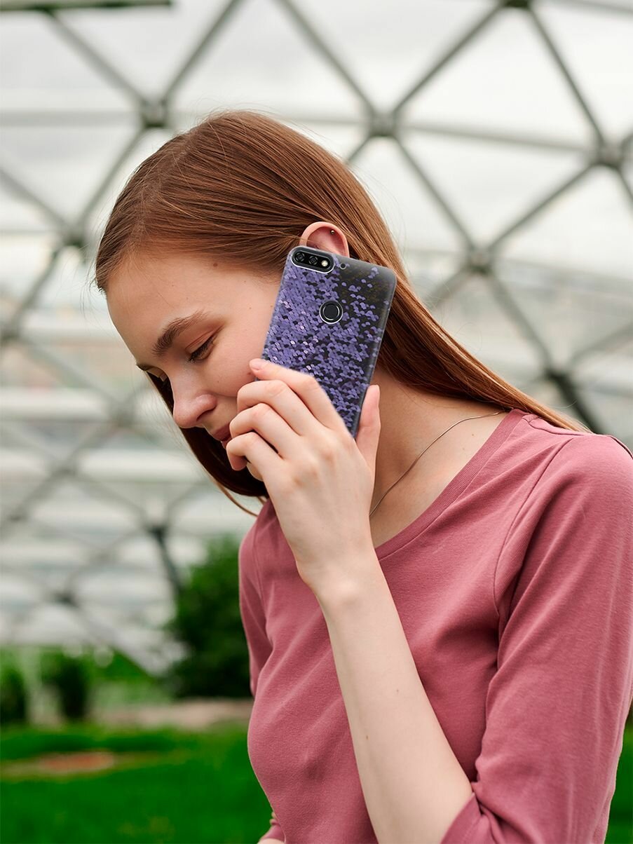 СохранитьСиликоновый чехол Фиолетовые пайетки на Honor 7C / 7A Pro / Huawei Y6 Prime (2018) / Хуавей У6 Прайм 2018 / Хонор 7А Про / 7С интересное: