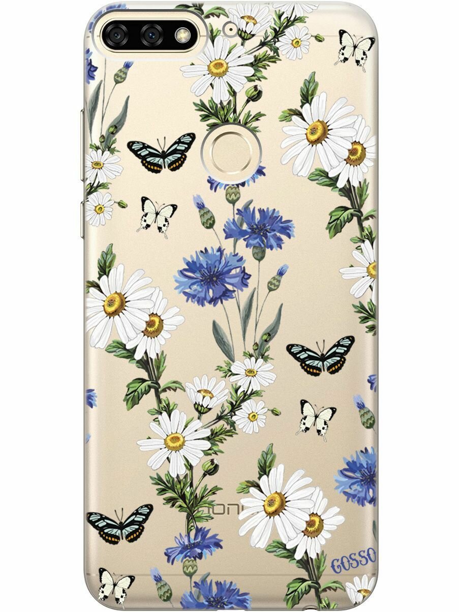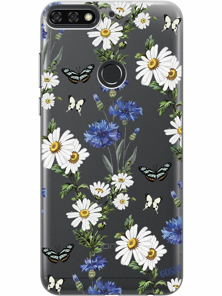 Купить Силиконовый чехол на Honor 7C / 7A Pro / Huawei Y6 Prime (2018) / Хуавей У6 Прайм 2018 / Хонор 7А Про / 7С с 3D принтом "Hello, Camomiles" прозрачный