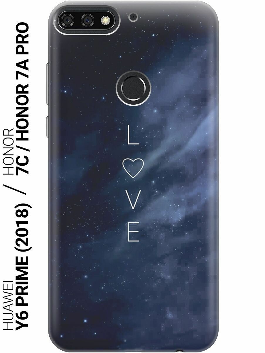 Силиконовый чехол на Honor 7C, 7A Pro, Huawei Y6 Prime (2018), Хуавей У6 Прайм 2018, Хонор 7А Про, 7С с принтом "Ночное небо и любовь"