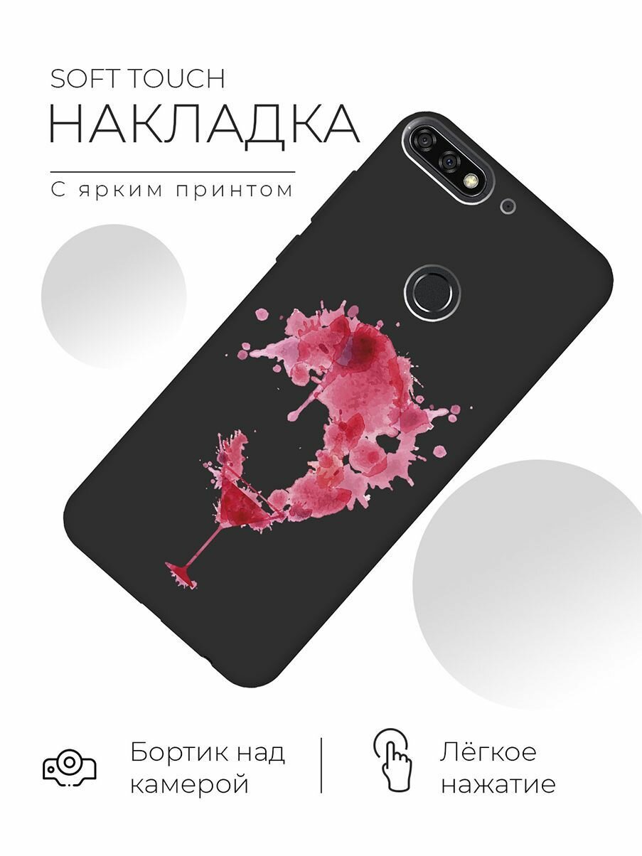 Купить Матовый чехол Cocktail Splash для Honor 7C / 7A Pro / Huawei Y6 Prime (2018) / Хуавей У6 Прайм 2018 / Хонор 7А Про / 7С с 3D эффектом черный
