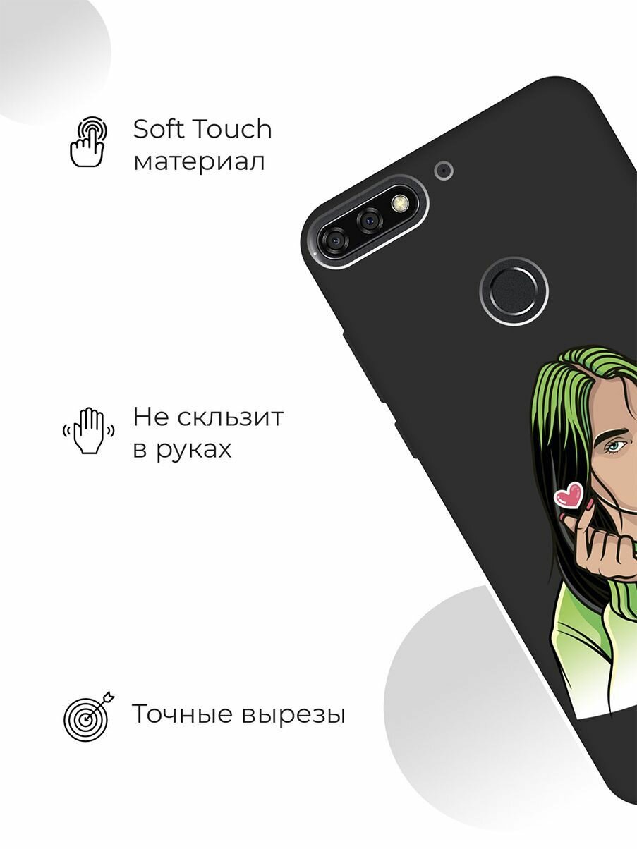 Матовый чехол Bye Then! W для Honor 7C / 7A Pro / Huawei Y6 Prime (2018) / Хуавей У6 Прайм 2018 / Хонор 7А Про / 7С с 3D эффектом черный