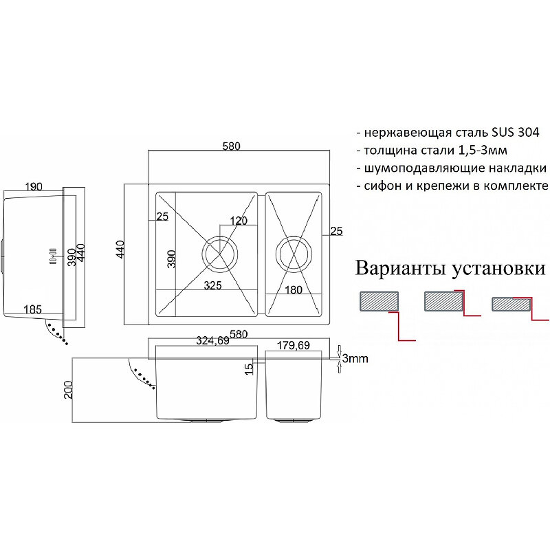 | Ширина мойки | 58 см |
