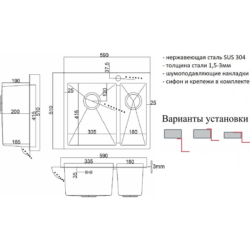 | Особенности | PVD покрытие / корзинчатый вентиль / отверстие под смеситель / сливная арматура |