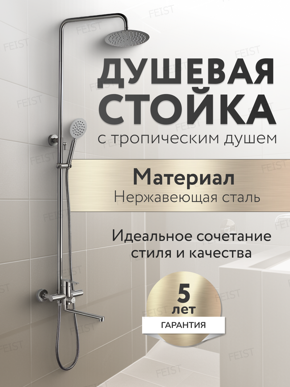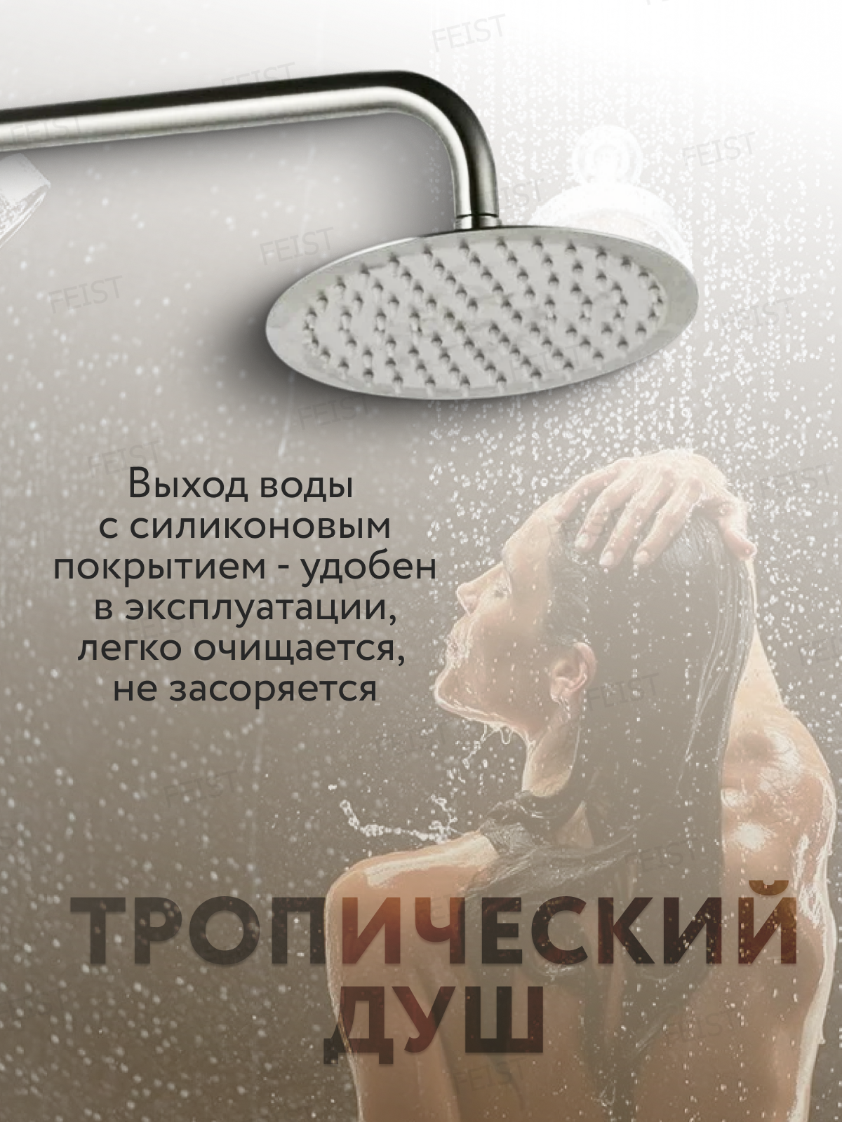 Душевая стойка c верхним тропическим душем, ручной лейкой, стальная интересное: