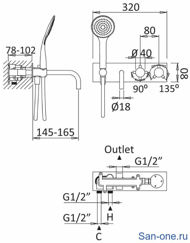 | Тип устройства | смеситель с душевой лейкой |