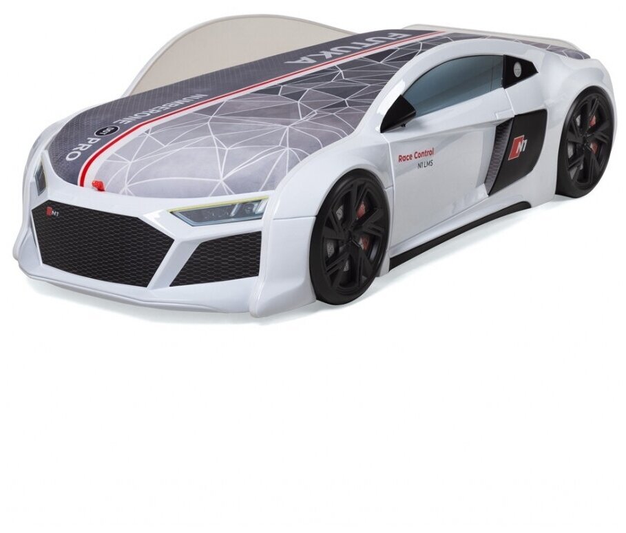 Futuka Kids кровать-машина N1 AUDI со встроенным матрасом, спойлером и подсветкой фар и дна, цвет белый, 80х180 см.