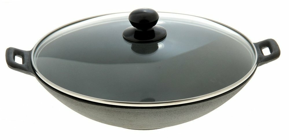 Доляна Сковорода-Wok чугунная Доляна «Восток», d=30 см, стеклянная крышка