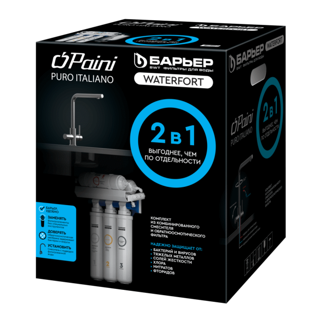 Фильтр для воды под мойку Барьер WaterFort OSMO с комбинированным смесителем PAINI интересное: