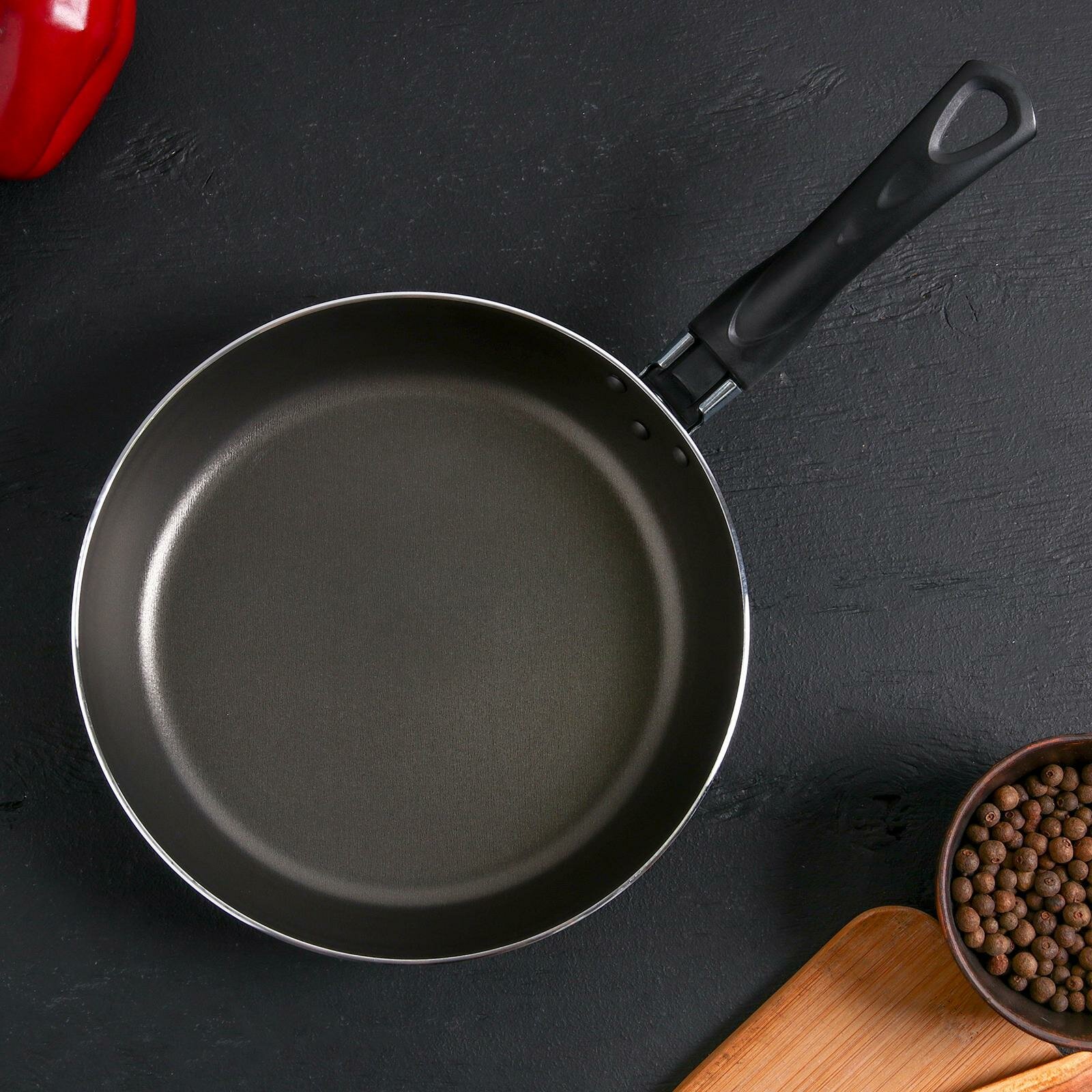 Сковорода Consul, d=26 см, пластиковая ручка, стеклянная крышка, антипригарное покрытие, цвет чёрный
