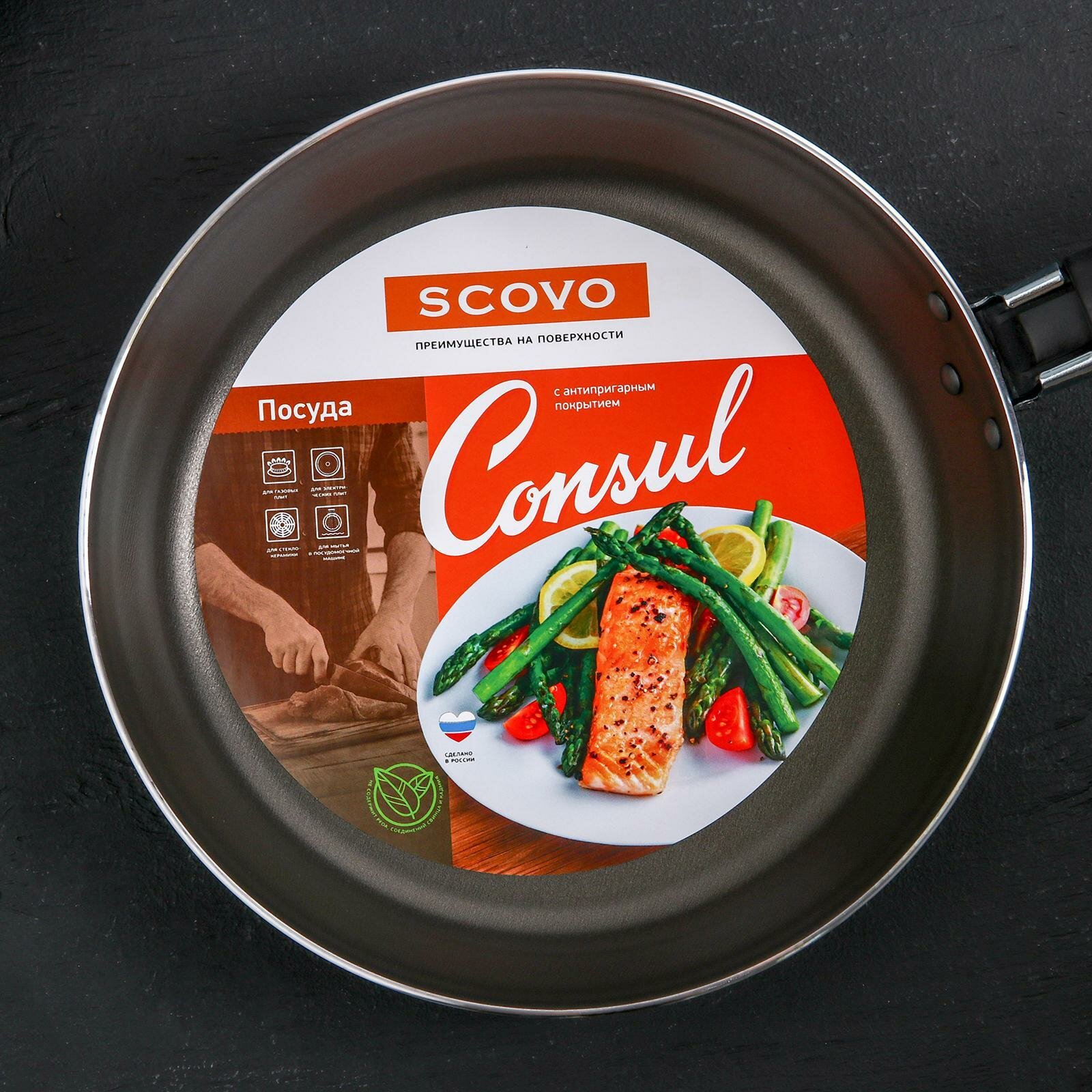 SCOVO Сковорода Consul, d28 см, стеклянная крышка