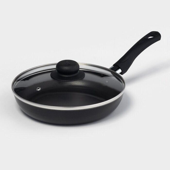 Сковорода Consul, d20 см, стеклянная крышка, пластиковая ручка, антипригарное покрытие, цвет чёрный
