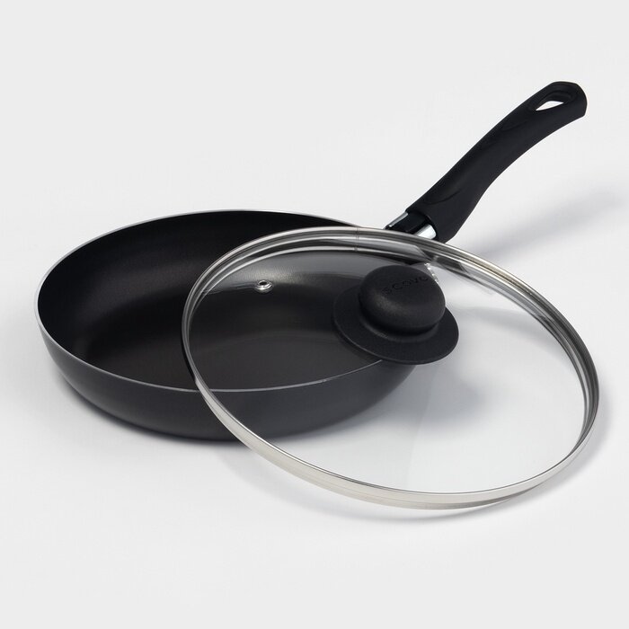 SCOVO Сковорода Consul, d=26 см, пластиковая ручка, стеклянная крышка, антипригарное покрытие, цвет чёрный