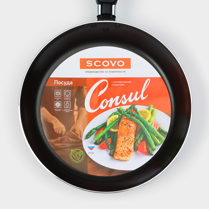 Сковорода Consul, d=24 см, стеклянная крышка, пластиковая ручка, антипригарное покрытие, цвет чёрный интересное:
