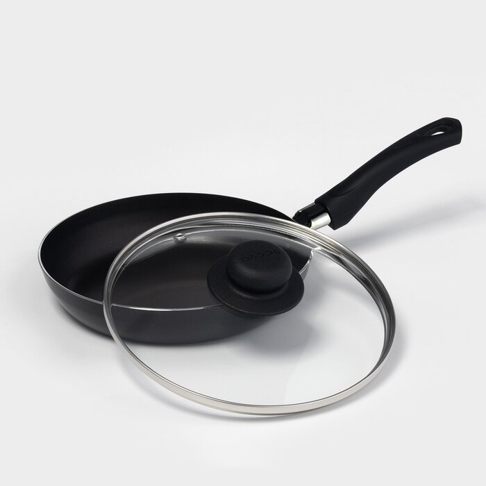 Сковорода Consul, d=26 см, пластиковая ручка, стеклянная крышка, антипригарное покрытие, цвет чёрный