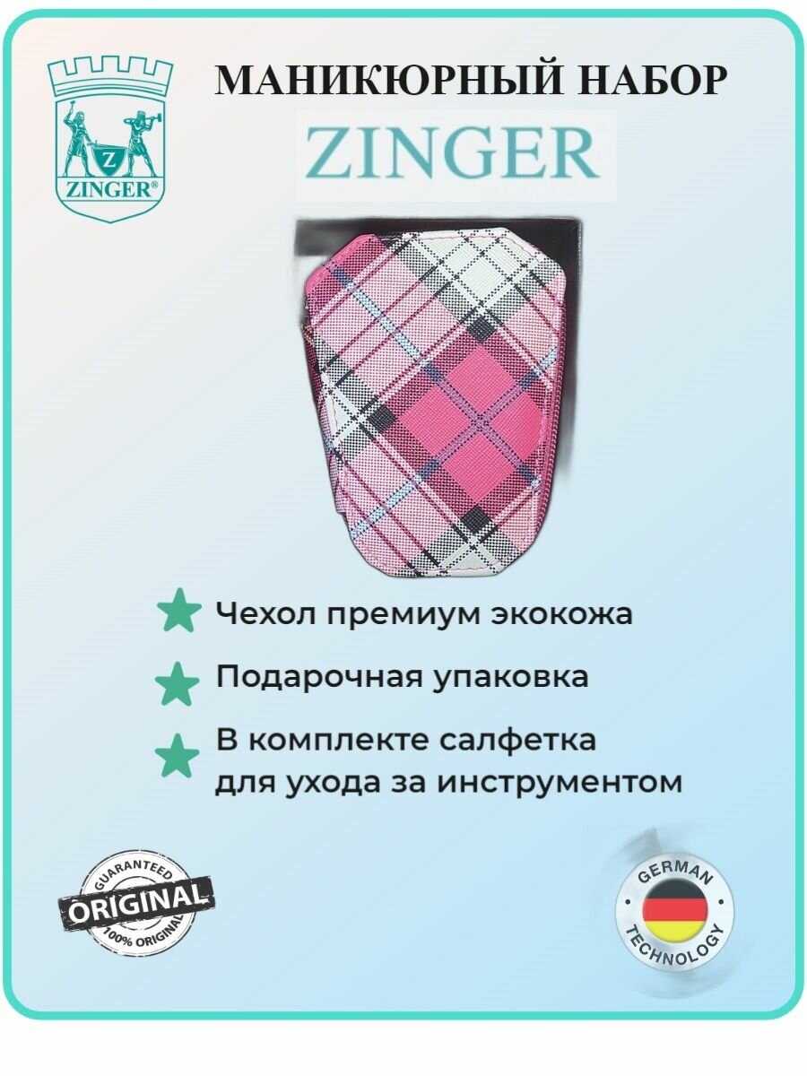 СохранитьМаникюрный набор на молнии, ZINGER, трапеция, MS-7103, 6 предметов, чехол клетка розовая интересное: