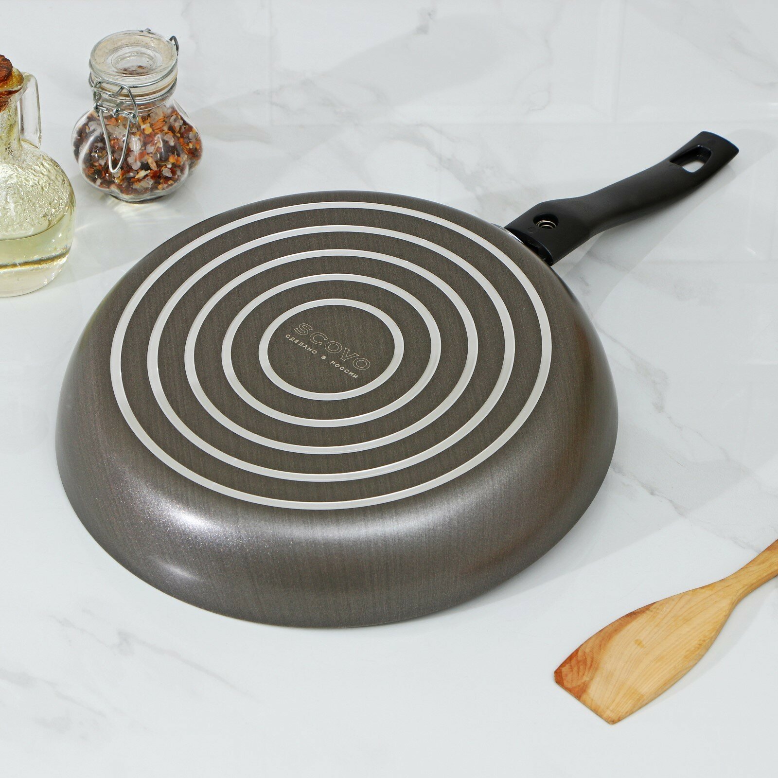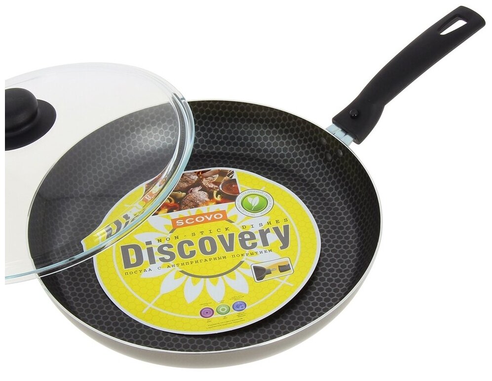Алюминиевая сковорода антипригарная со стеклянной крышкой Scovo Discovery 26 см интересное: