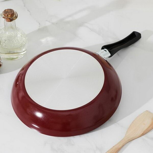 Сковорода Prosto, d=24 см, пластиковая ручка, антипригарное покрытие, цвет бордовый SCOVO 3250478 .