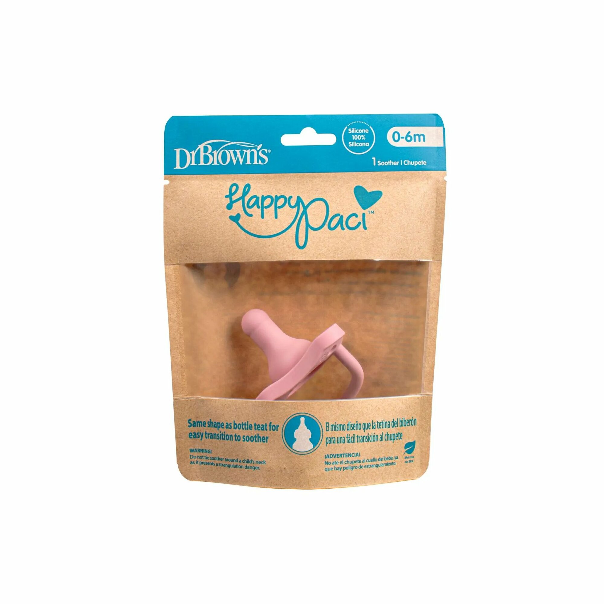 Пустышка Dr. Brown's HappyPaci цельносиликоновая 0 - 6 месяцев, розовая