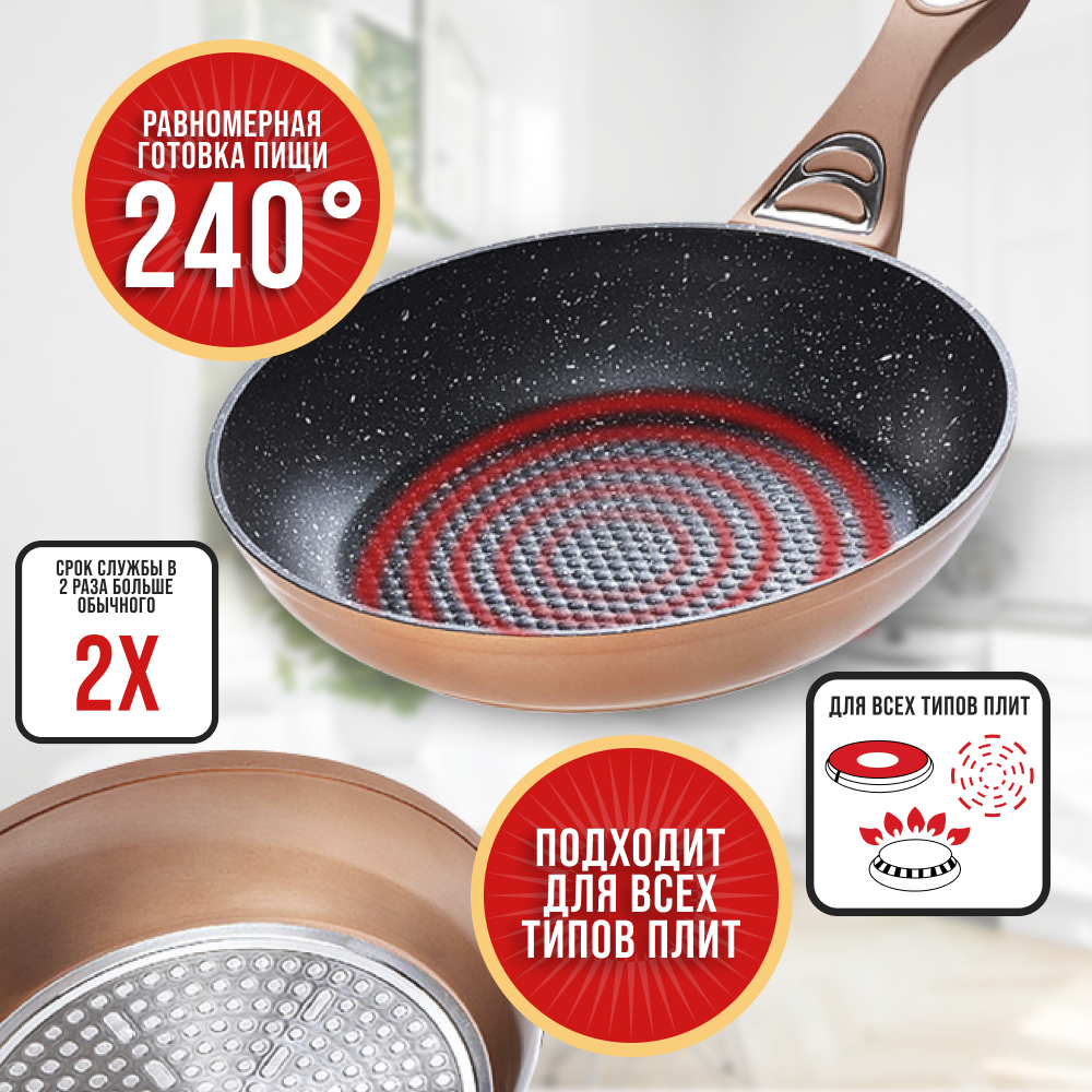 Сковорода алюминиевая Mayer&Boch 24 см с антипригарным мраморным покрытием, цвет бронза 27507