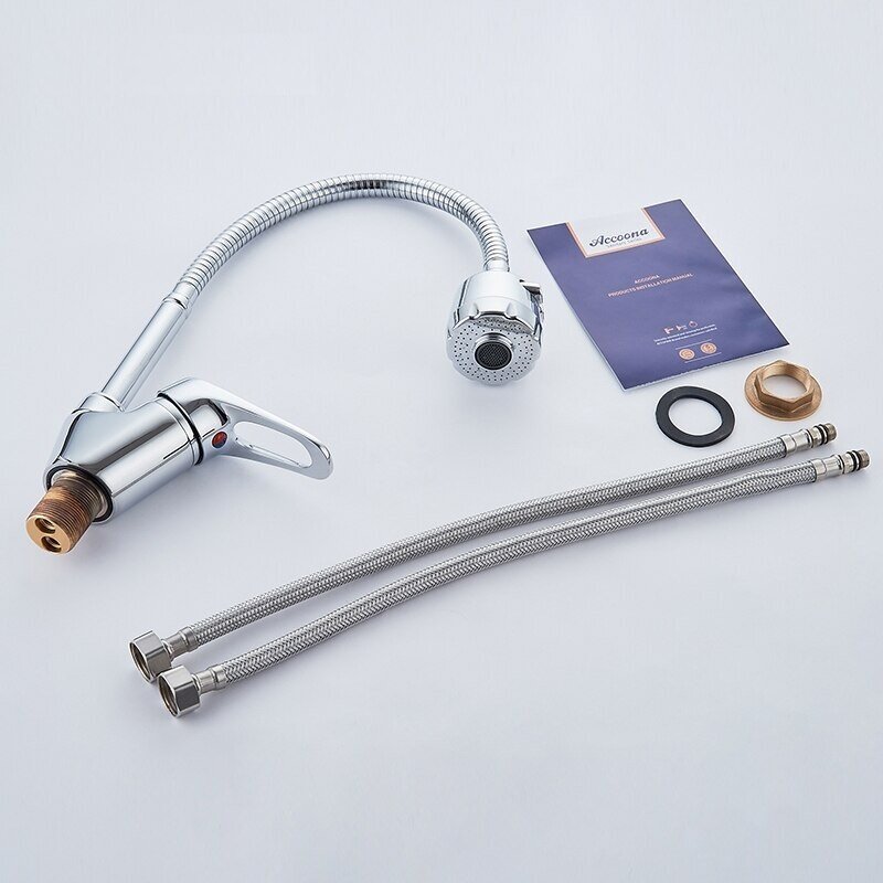 Accoona Смеситель для кухни Accoona A4850, однорычажный, гибкий излив, хром