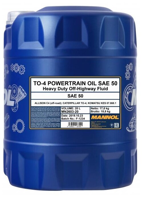 Трансмиссионное гидравлическое масло Mannol 2603 TO-4 Powertrain Oil SAE 50, 20л, 3010 интересное: