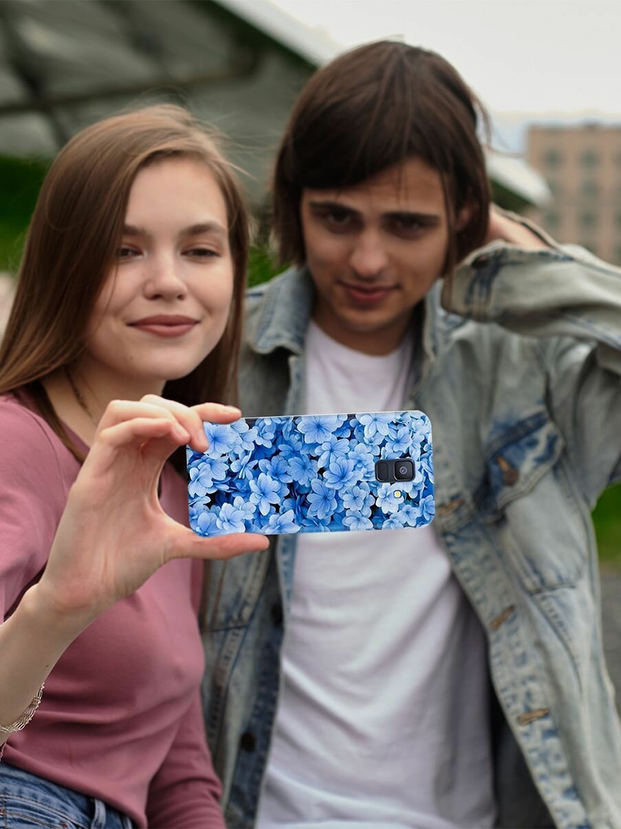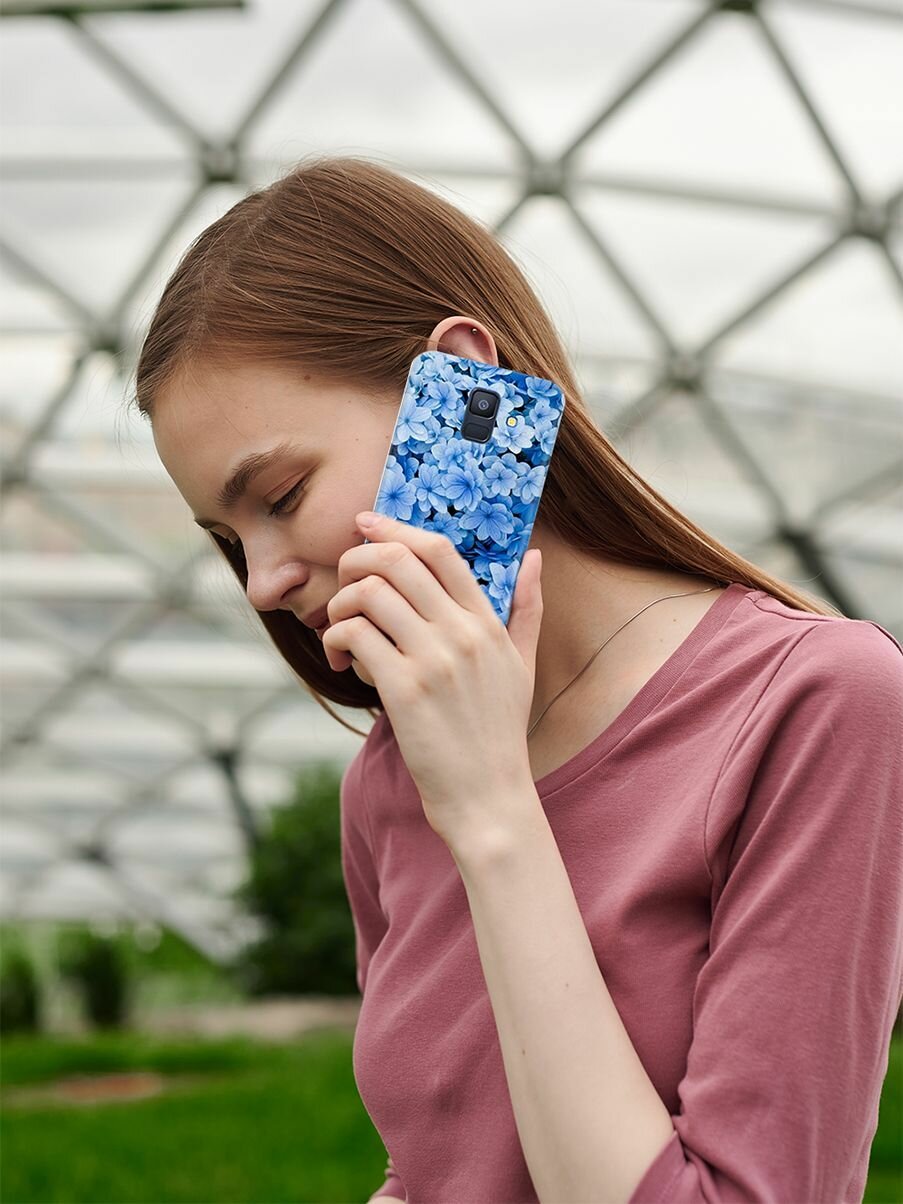 RE:PA Накладка Transparent для Samsung Galaxy A6 Plus (2018) с принтом "Голубые цветочки" интересное: