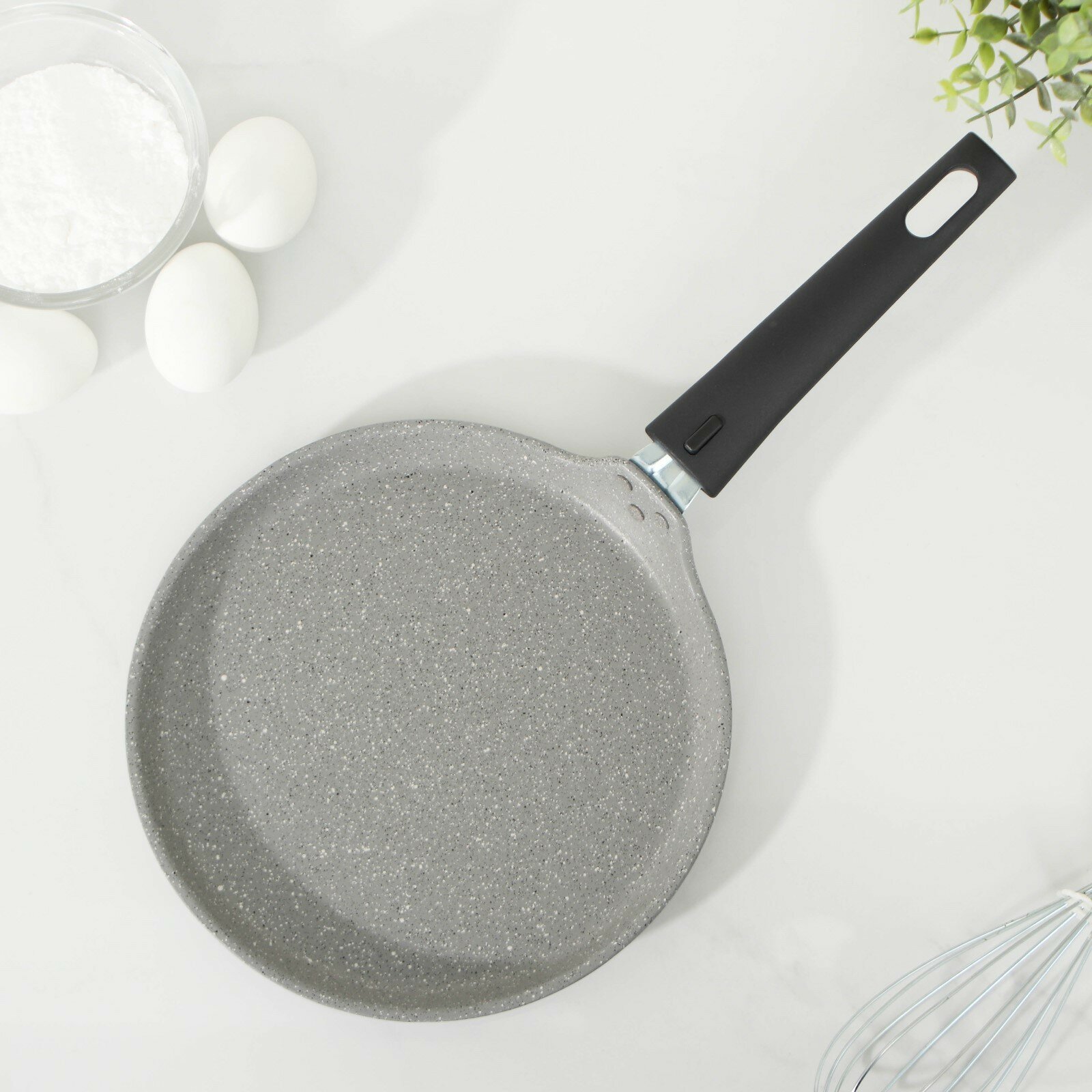 Сковорода блинная, d=22 см, пластиковая ручка, антипригарное покрытие, цвет светлый мрамор интересное:
