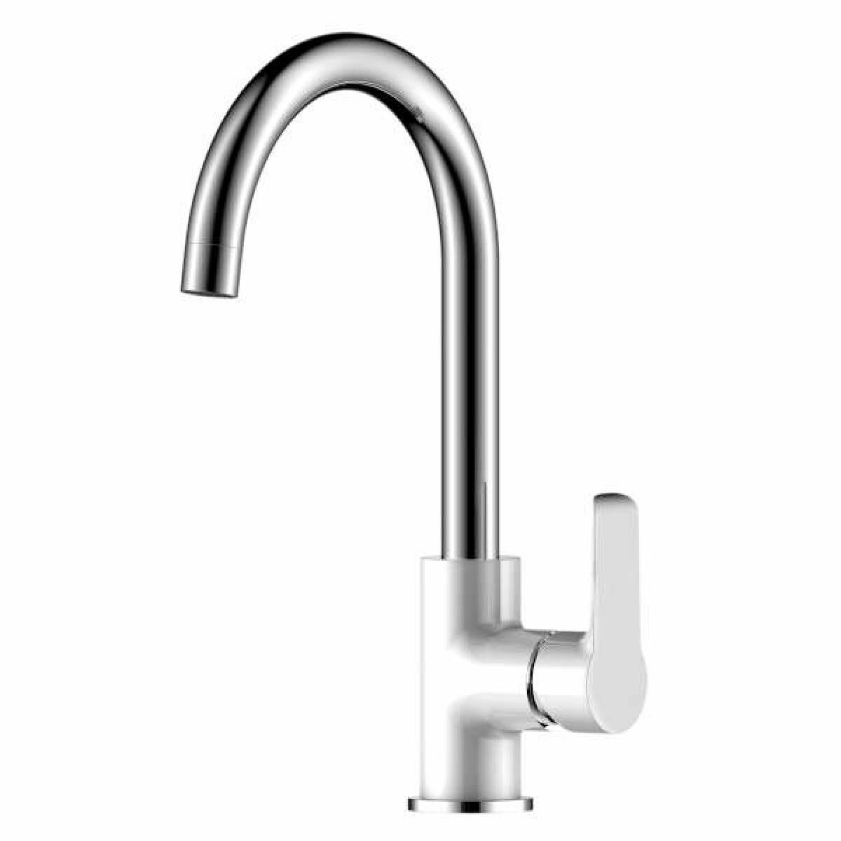 Смеситель для кухни Rossinka W35-24, одноручный, с высоким поворотным изливом, хром/белый Rossinka .