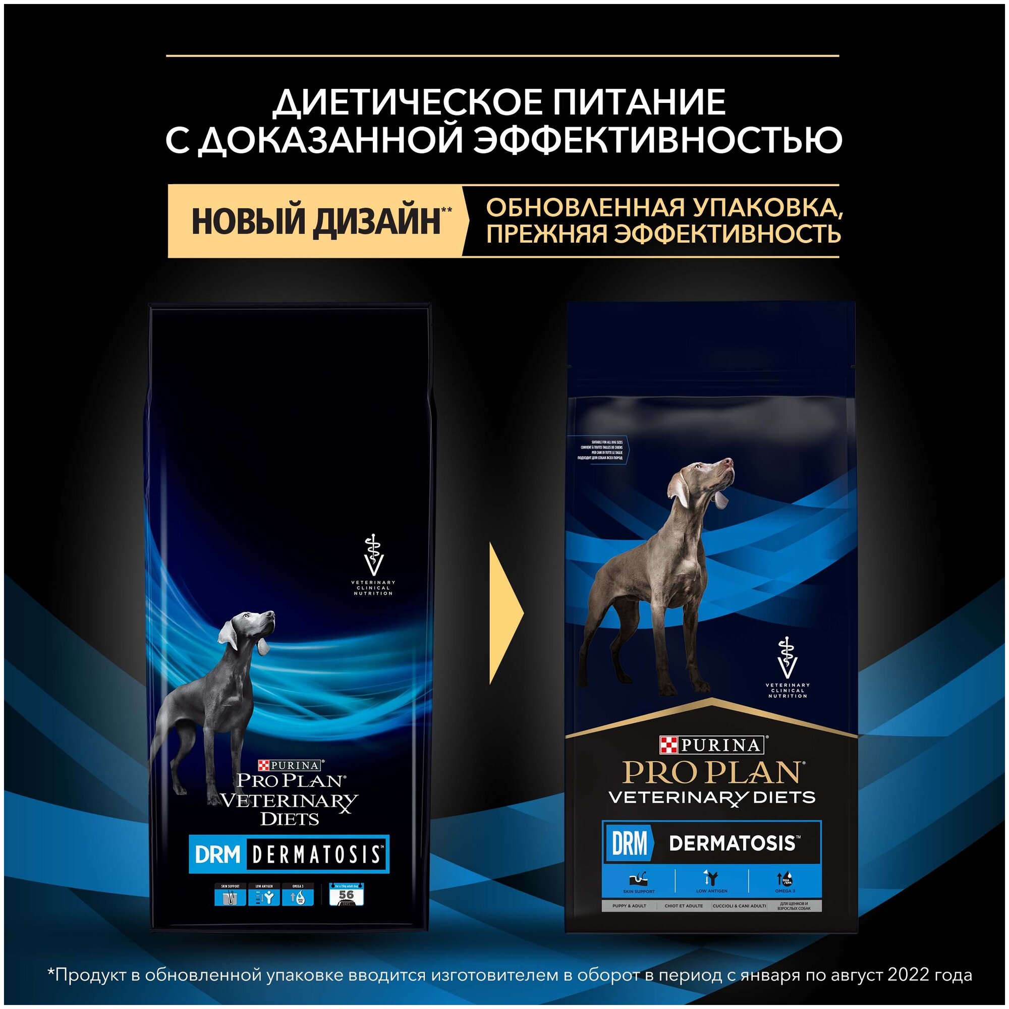 Корм сухой для щенков и взрослых собак PRO PLAN VETERINARY DIETS DRM Dermatosis при дерматозах и выпадении шерсти 3 кг