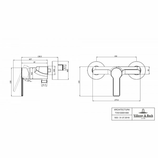 Смеситель для душа Villeroy & Boch ARCHITECTURA TVS10300100061