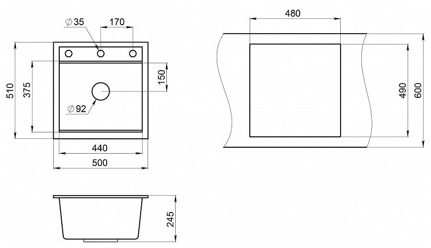 | Форма мойки | квадратная |