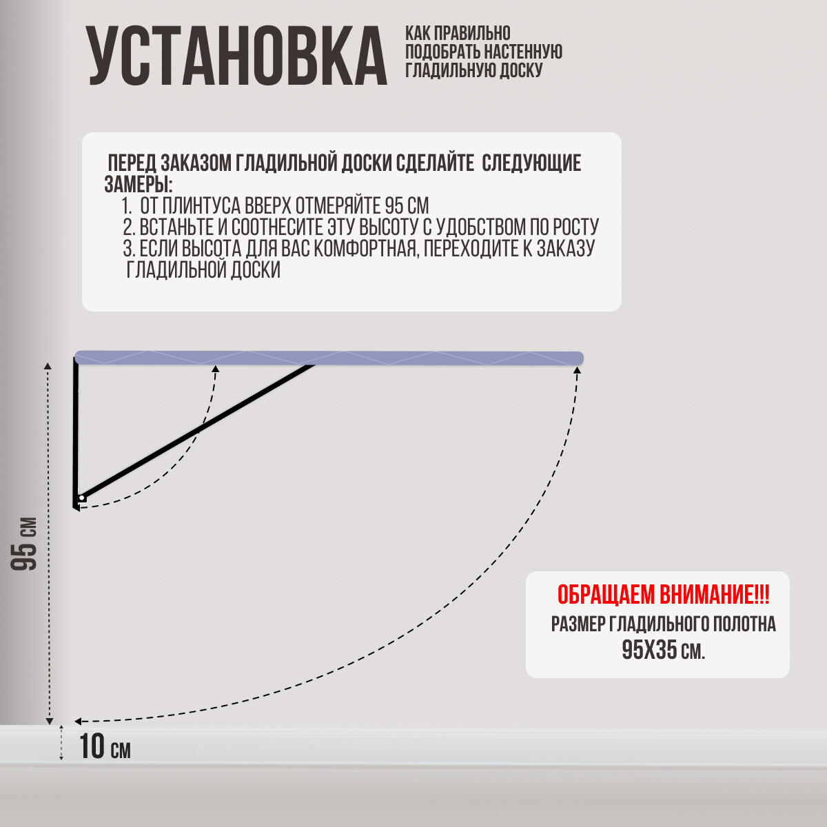 | Размеры гладильной поверхности (ДхШ) | 95 x 35 см |