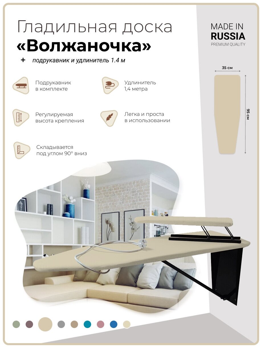 Гладильная доска настенная с подрукавником и электроудлинителем, сливочный, 95 х 35см интересное: