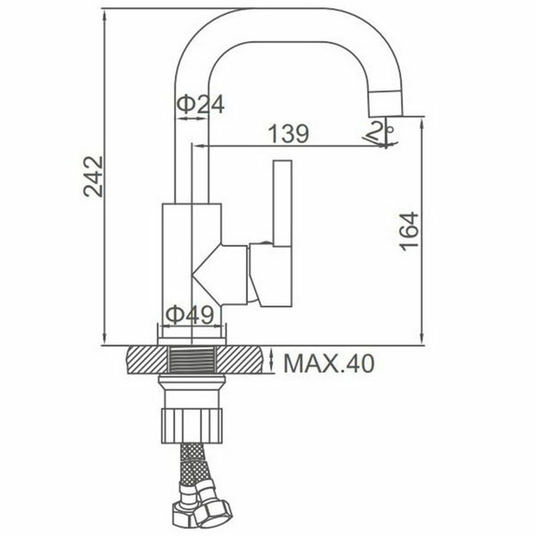 Смеситель для кухни Accoona A9687F (однорычажный, с гайкой) латунь, черный