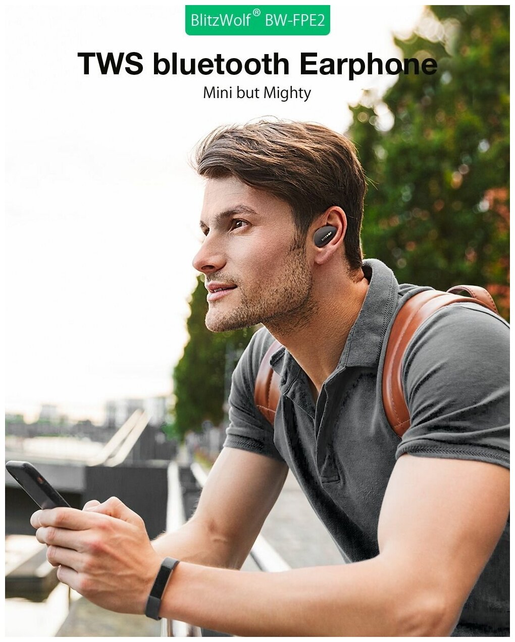 Наушники беспроводные TWS BlitzWolf BW-FPE2 с микрофоном, водонепроницаемость IPX4 - Черные интересное: