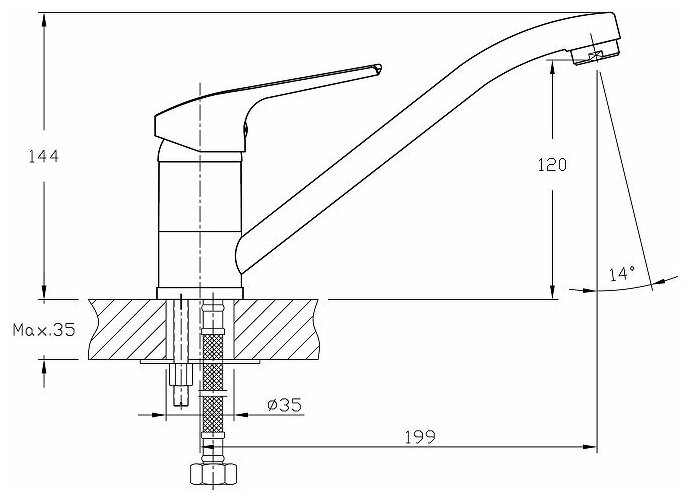 | Длина излива | 199 мм |