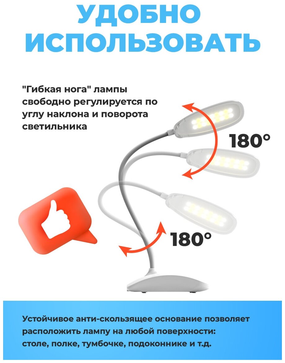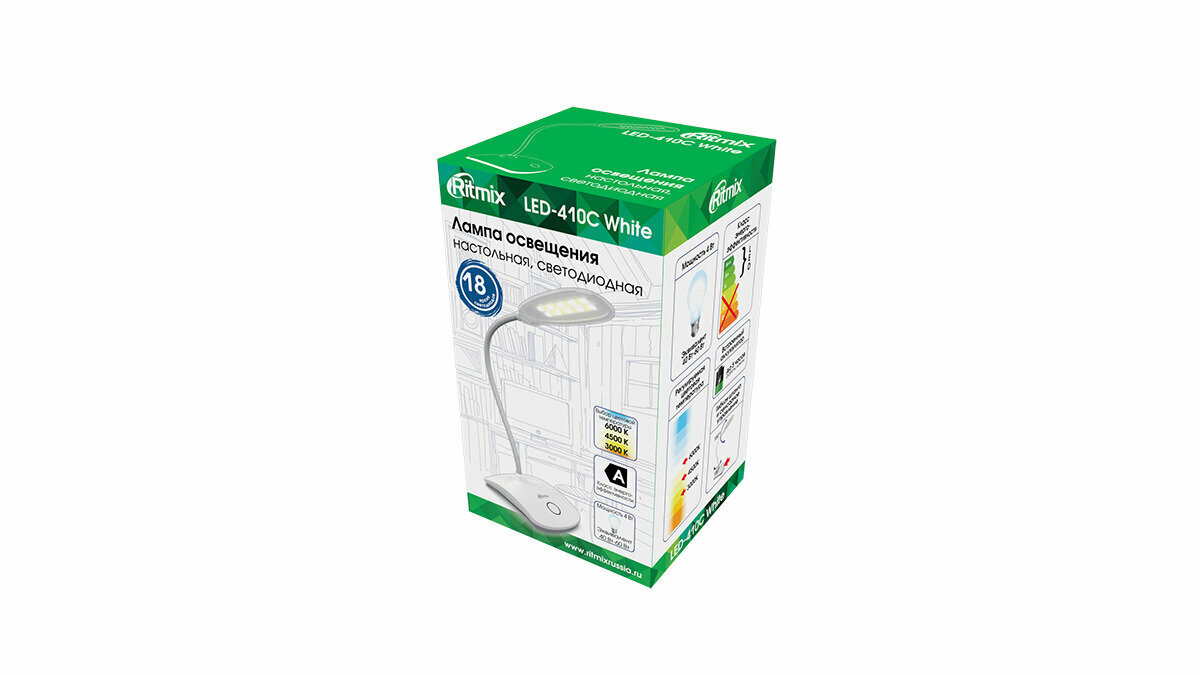 Светильник светодиодный Ritmix настольный LED-410C White, 18 LED, 4Вт, 200лм, ССТ:3000К/4500К/6000К