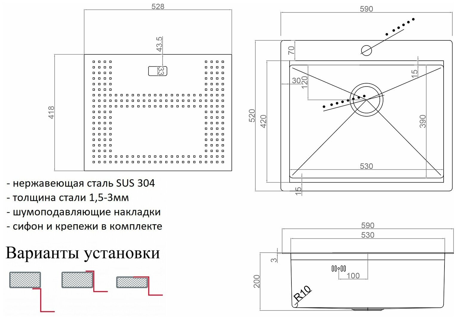 | Особенности | коландер / корзинчатый вентиль / отверстие под смеситель / разделочная доска / сливная арматура / угловая |