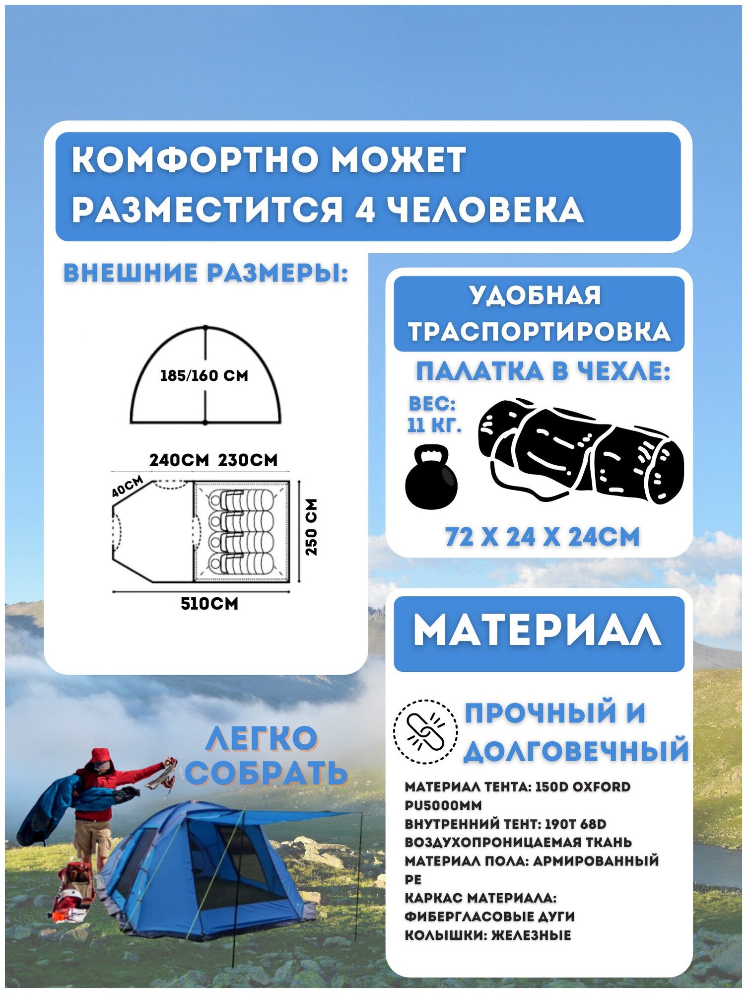 Палатка / Туристическая / Для туризма / Двухслойная / С тамбуром / Шатер / Кемпинг / Рыбалка / mir1600W-4 интересное: