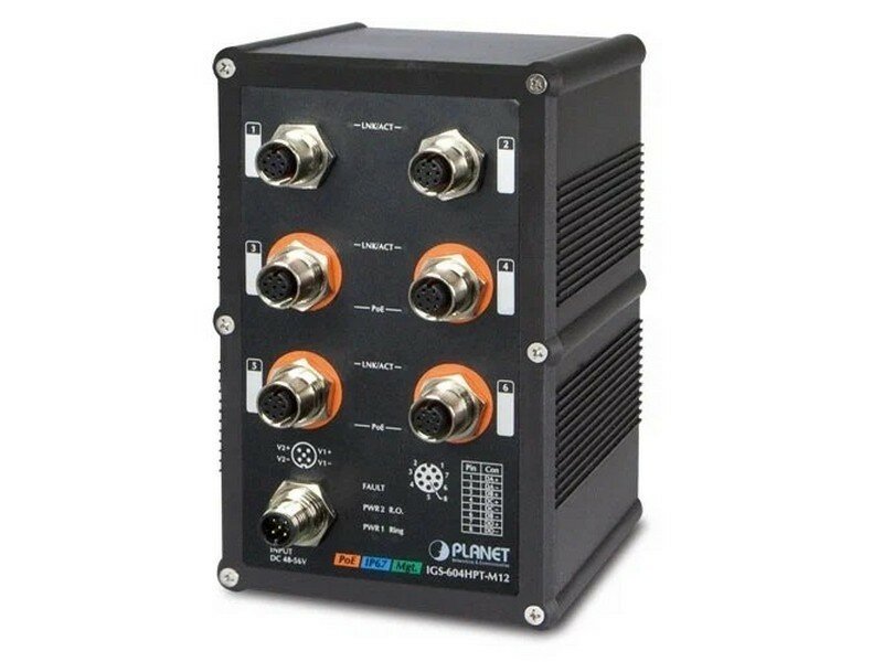 Промышленный управляемый коммутатор PLANET IGS-604HPT-M12 4-портовый 10/100 / 1000T 802.3at PoE + 2-портовый 10/100 / 1000T с классом защиты IP67
