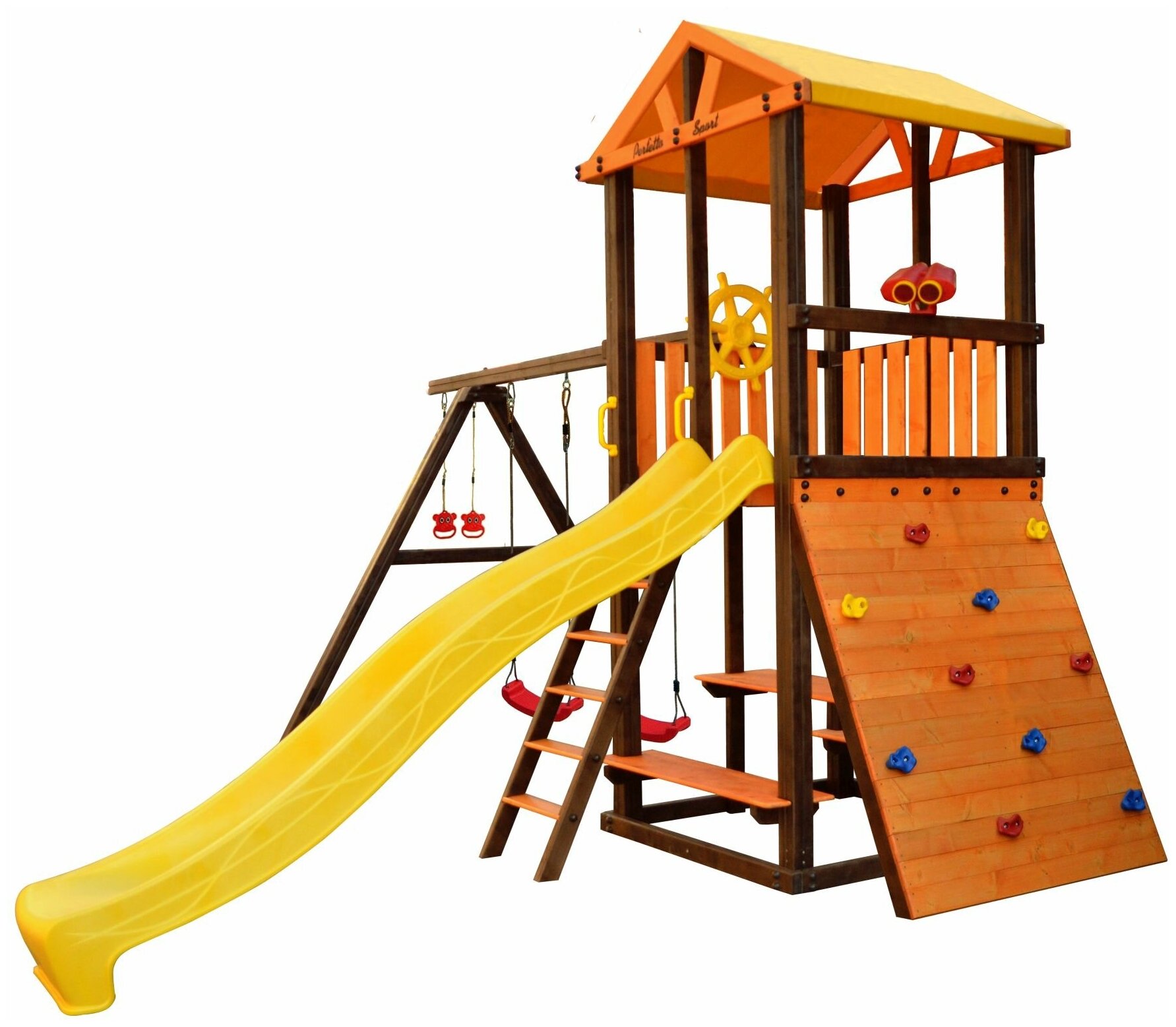 | В комплекте | гимнастические кольца, горка, качели, лестница, скалолазная стенка |