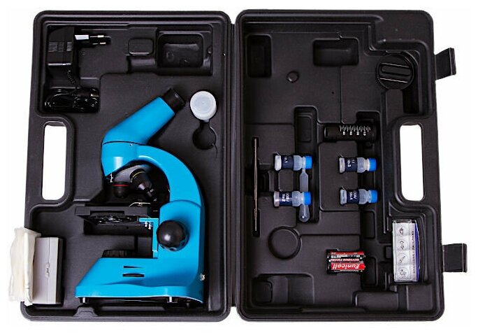 Купить Микроскоп Levenhuk Rainbow 50L PLUS Azure Лазурь, в кейсе + подарок адаптер для смартфона